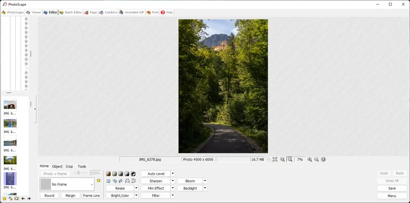이 앱은 크기 조정 , 자르기, 회전, 뒤집기 등 모든 기본 편집 기능을 제공합니다 . 또한 밝기, 선명도, 역광, 대비 조정 도구를 사용할 수 있습니다. 다양하고 혁신적인 내장 효과와 필터를 적용하여 멋진 결과물을 얻을 수 있으며, 뷰어를 통해 편집 과정을 확인할 수도 있습니다. 화면 하단에는 사진과 관련된 모든 정보가 표시됩니다. 키보드와 마우스를 사용하여 다음 사진으로 이동할 수 있습니다.